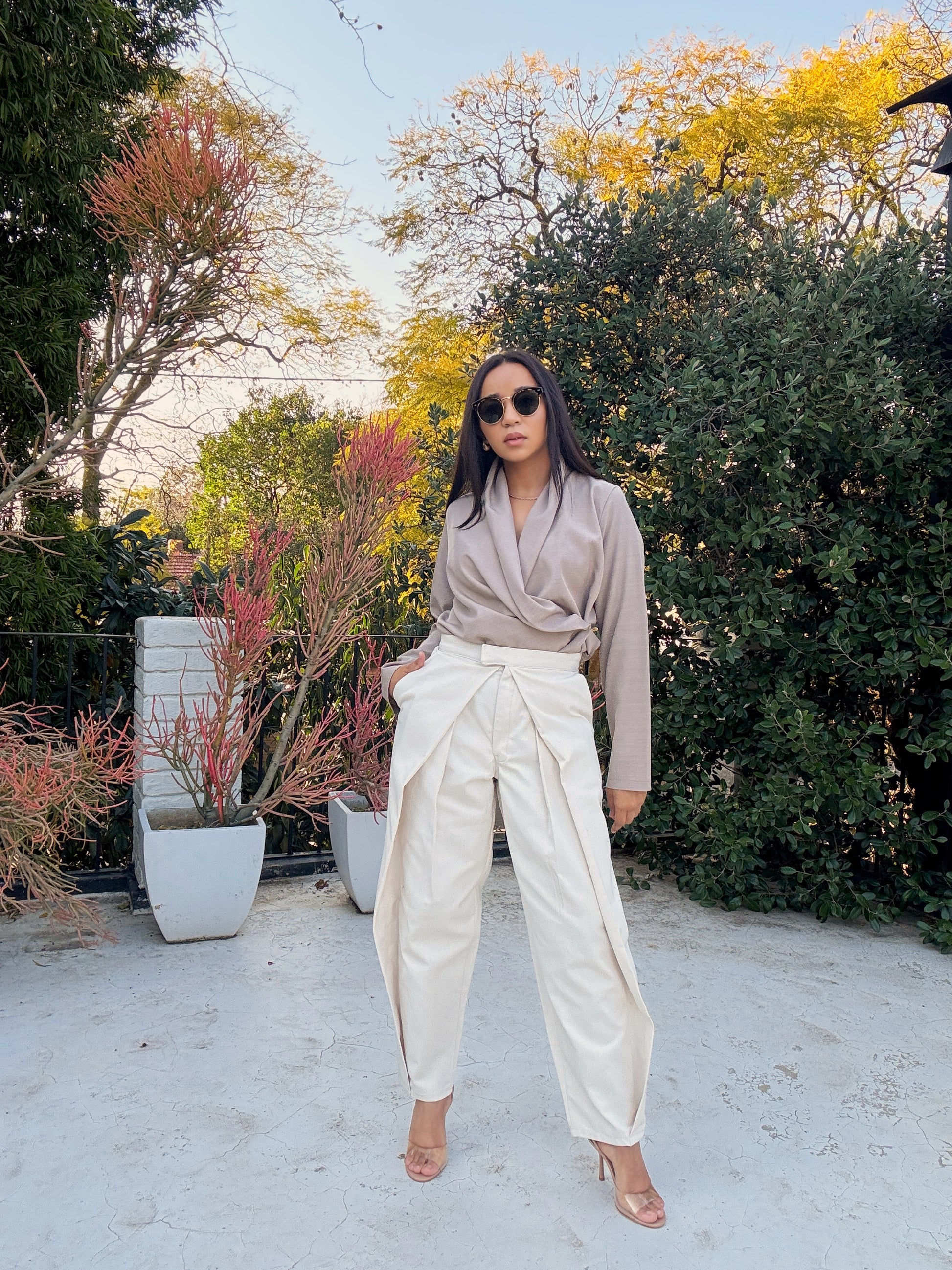 Made from durable bull denim, the PINAH TROUSERS combine rugged strength with refined style. Designed with convenient side pockets and elegant arched front pleats, they offer a flattering fit and practical functionality. These trousers are perfect for adding a polished yet comfortable touch to your everyday wardrobe.