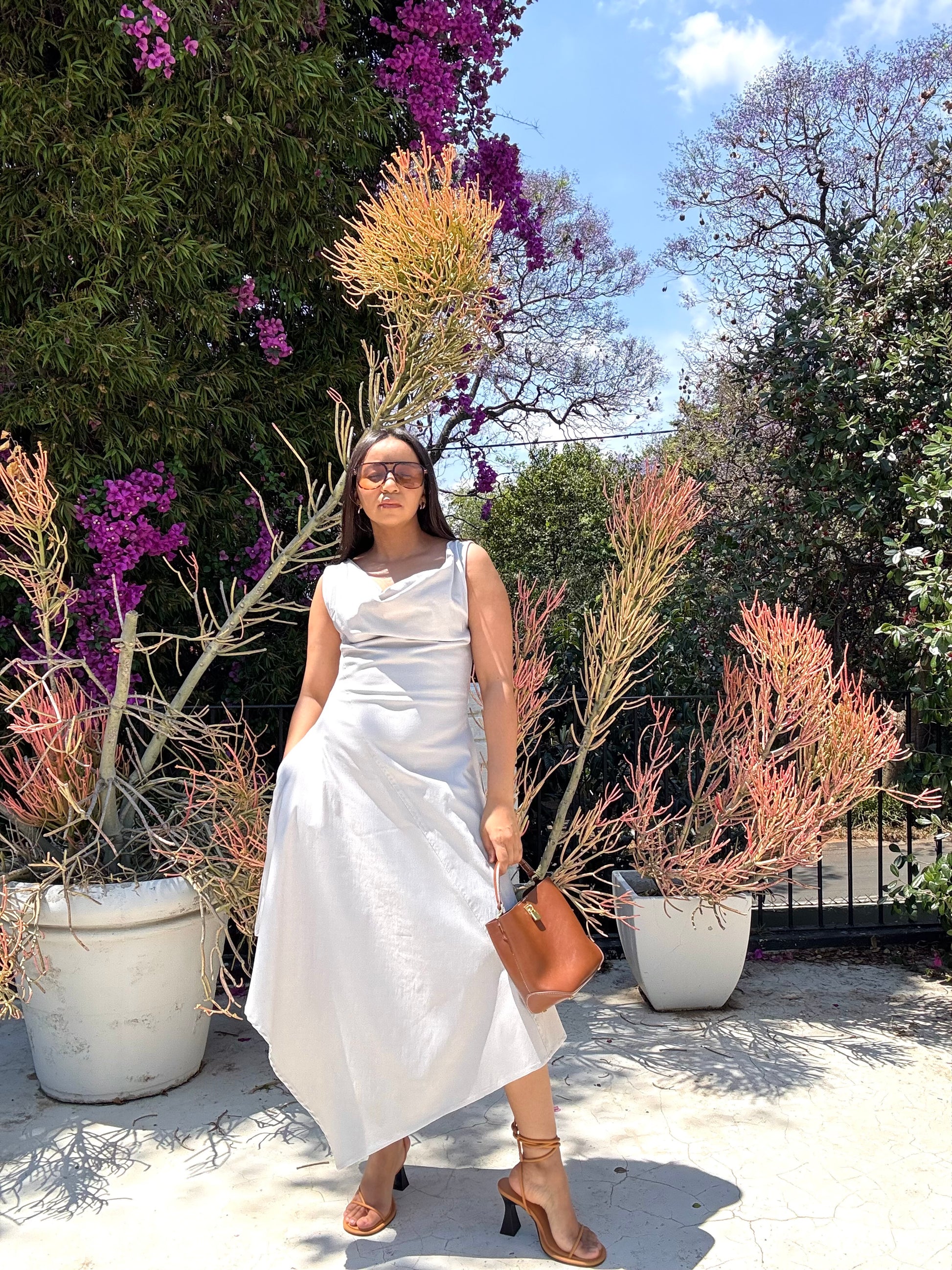 Introducing The Elba Dress, the perfect midi dress for all occasions. The carefully designed assymetric hem adds an elegant touch to this versatile piece. Stay stylish with this must-have addition to your wardrobe.